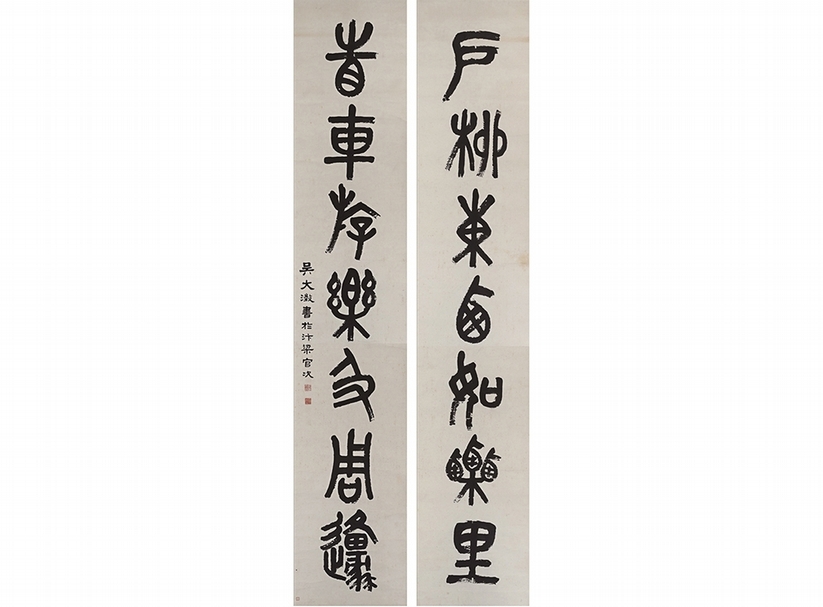 吳大澂〈篆書七言聯〉,各334.5×62.5公分。