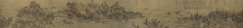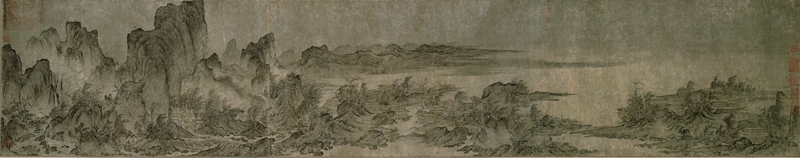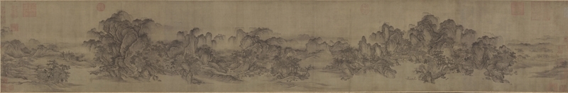 而若說起中國畫裡宜於用來表現「可行」、「可望」、「可遊」、「可居」的山水,大概是橫長的手卷形制了。畫家作畫時,乃藉由移步換景的方式,將見諸不同時間或空間的景色逐一描繪下來,再於手卷逐段展開的過程中,一一展示在觀者面前,頗類似現代相機橫向平面移動的拍攝功能。透過這種連續觀看的方式,觀者可以更加細膩且完整地體會作品中所描寫的自然景象和情境,獲得更豐富的美感經驗。以下,便為大家介紹幾幅宋代11~12世紀的山水長卷,看看畫家如何巧妙搭配運用不同的手法,創造出令人心馳神往的自然幻境。