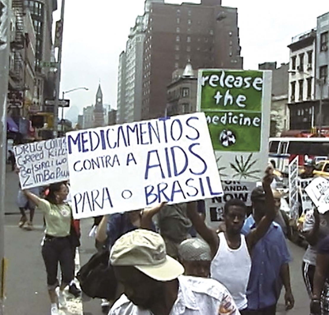 「我們要求藥物醫療普及每個國家!」這是格雷格.博多維茨(Gregg Bordowitz )的錄像作品《習性》(Habit,2001)裡的抗議現場片段。描述自1998年成立的南非「治療行動組織」(Treatment Action Campaign,簡稱 TAC)爭取在南非貧窮的愛滋人口能夠接受雞尾酒療法的機會與權利。然而,國際大廠藥價居高不下,他們便個別飛往泰國買當地藥廠製造的便宜通用名藥物讓成員帶回國內。此近似非法入口的舉動除了抗議政府的不作為,也強烈主張世界貿易組織需要與國際藥廠協議開放藥物的專利,讓在地藥廠製造與專利藥品成分相同的藥物。