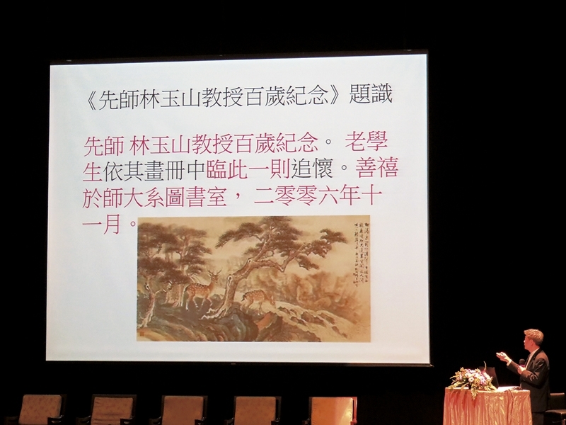 王壽來表示鄭善禧在〈先師林玉山教授百歲紀念〉題識中自稱「老學生」,並以臨摹來緬懷師恩。攝影︱張筠