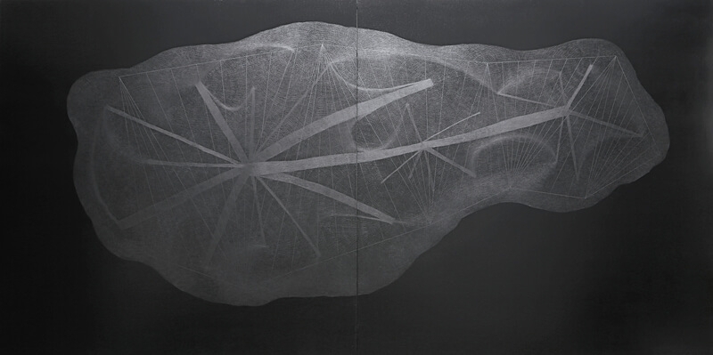 陳科偉以植物、花卉與女性的結合,以精緻的繪畫技巧製造迷離幻夢的視覺風格,細觀其肌理更創造出一種乍似偶然性卻能控制的龜裂質感,以深耕技法的方式面對其創作階段性課題。陳宏群以繪畫在當代藝術存在的必然性為探詢,延續其過去對於寫實、古典技法的研究,將透視、空間維度、時間等課題延伸至六邊形的畫布之上,藉由宇宙科幻卻具物理學的理性視野,企圖將美學原理在平面視覺上解剖與拆析,敘事出繪畫當中詩意和存在意義的追問。
