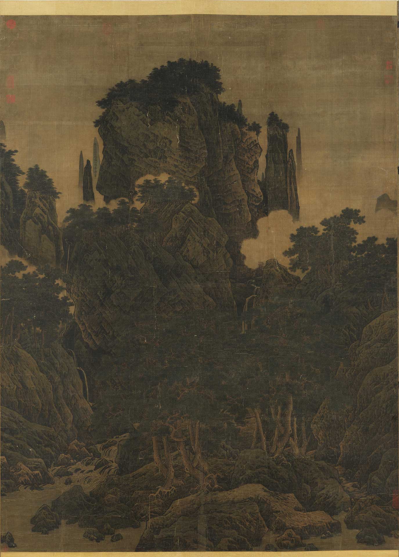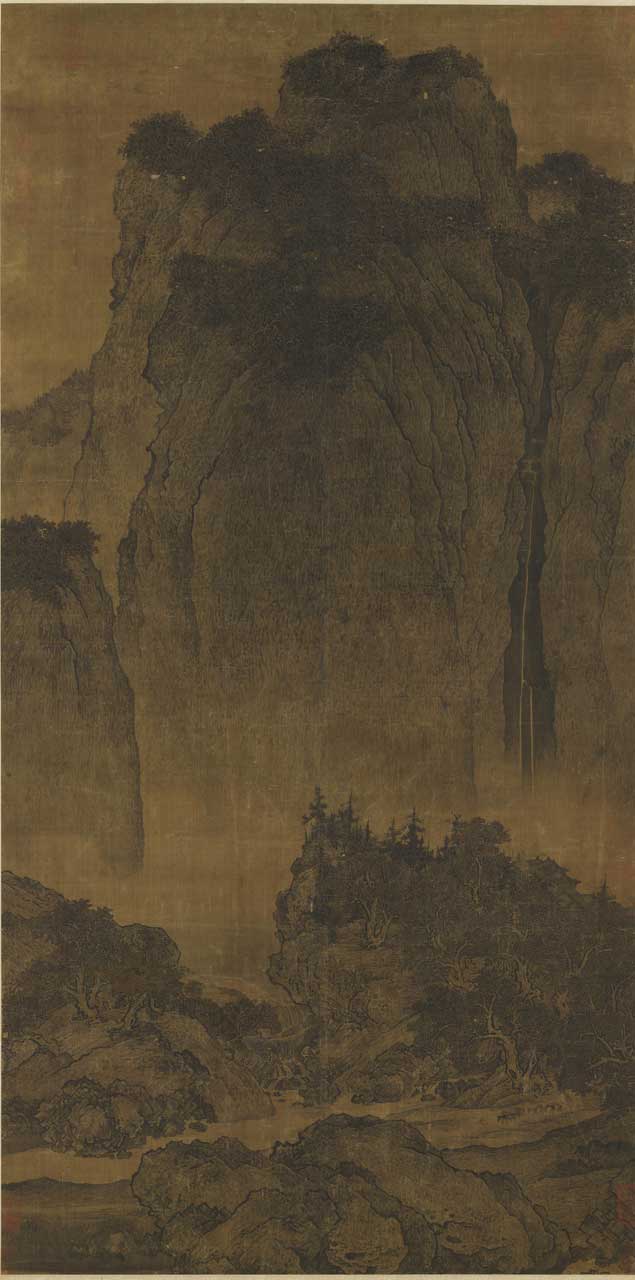 范寬、郭熙、李唐為宋代畫壇上舉足輕重的三大家,其筆墨技法、山水造境的意趣廣為後世所效仿,是歷代畫家學習取法的重要典型,自古至今影響不輟。此代表性的三巨幅立軸,可以說是北宋「巨碑式」山水畫的典型。古人藉由對自然的靜觀與體悟,重新組織凝聚而成的理想山水面貌。