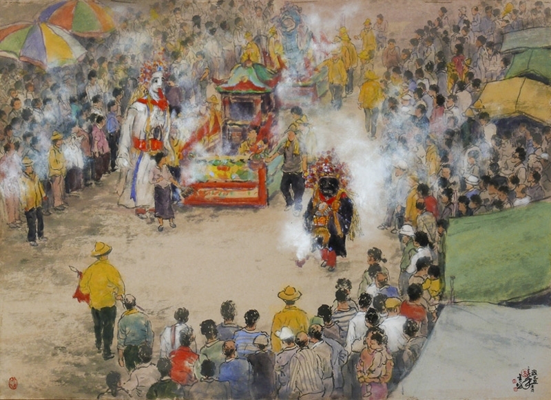 袁金塔 廟會 綜合媒材紙本 78×107cm(長流美術館提供)
