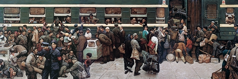 高小華│《趕火車》│1981 年│油畫│155×450 公分│作者收藏