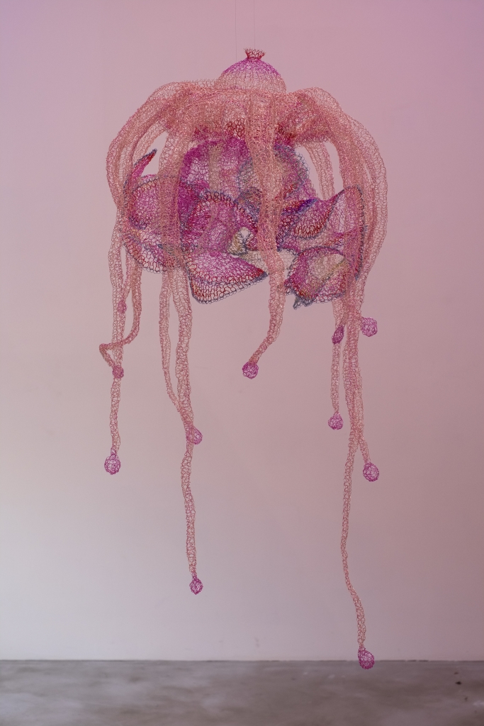 洪郁雯,《粉紅環面》,彩漆銅線,98×60×60cm,2021。(Hiro Hiro Art Space提供)