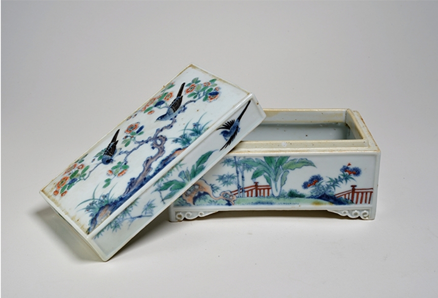 康熙〈芭蕉花鳥鬥彩方盒〉。(慎德堂提供)