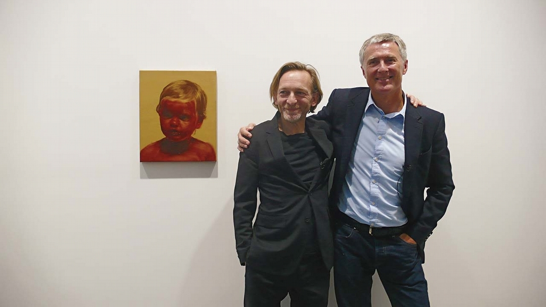 卓納(David Zwirner,右)與博伊曼斯(Michaël Borremans)於「太陽的火焰」展覽現場。圖│梁寶山