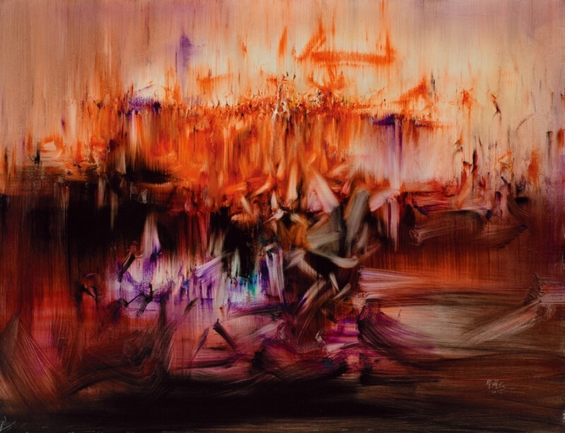 抽象奔放的畫面,卻是向「自然再現」浪漫寫實汲取的養分。畫布上躍動的色彩閃耀著自然光影難以捉摸的光彩,「光之詩篇」因此渾然天成。創作歷程自由而靈動,每一張呂榮琛作品在創作過程中經歷的醞釀轉折各有不同,其中共通不變的是他的堅持不輟、時時精進,這是他作為一位藝術家的專業表現。