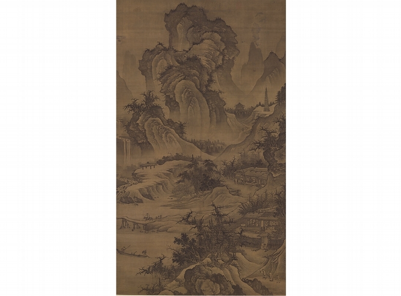 明朝李在繪(舊傳宋郭熙)〈山莊高逸軸〉,絹本設色,故畫000829。台北國立故宮博物院版權所有。