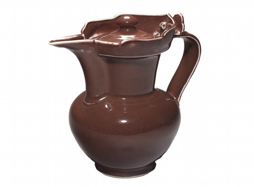 明宣德朝江西景德鎮〈寶石紅僧帽壺〉(底刻乾隆乙未仲春月御題詩),故瓷017764。台北國立故宮博物院版權所有。