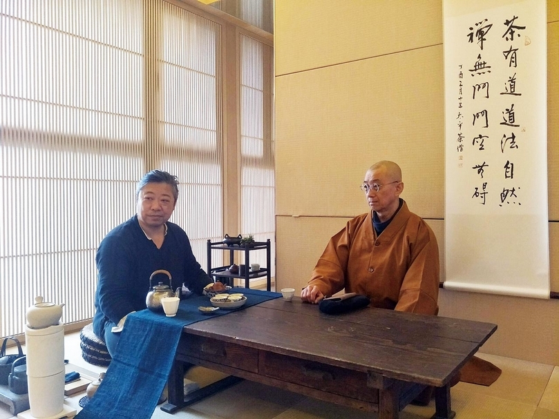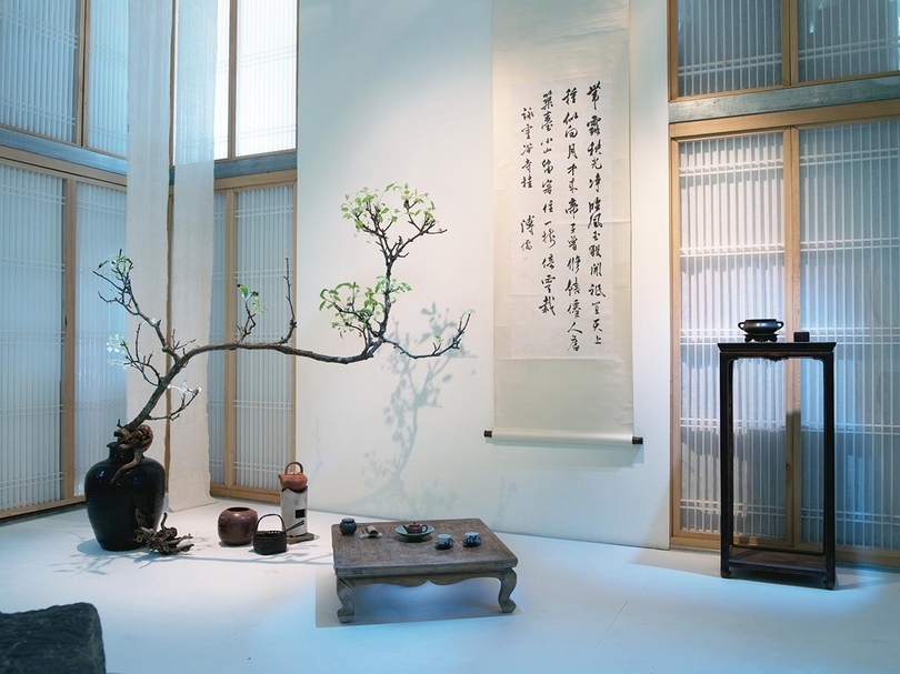 很難想像,這裡原是片鐵皮屋,經茶寮主人王介宏賦予新境,好似明代吳門畫派文徵明《品茶圖》,清雅幽靜,自在怡然。宋人四般閒事:點茶、焚香、插花、掛畫,加以明代的文人生活情調,在此空間被具體實踐。四閒事為雅名,每一類項都是門學問,絕非一蹴可幾的等閒之事。探究王介宏的歷程,1990年代即收藏古玩,最早從廈門、漳州、漳浦一帶工夫茶的茶道具,再一路往北,參加上海、杭州、北京、天津各地的展銷會,進入到唐宋遼金元的玉器,這期間也自然會購藏些竹木牙角等文房清翫。其經營的「漱玉樓」,從1997年始舉辦一系列玉器專題展覽,第一檔即是「形神兼備—宋遼金元玉器」特展,直到2005年「玉律清賞—清代玉雕陳設與雅玩珍藏展」。2004年受到鴻禧美術館舉辦的「閑居養志:傳統文人雅翫清賞」展深刻啟發,至2007年辦「閑居.養志」展覽,突破單一類項思考,結合文玩、品茗、香道、花藝,並改造整個空間概念,體現閒適文化之內在精神追求,正如明代高濂《遵生八箋.燕閑清賞箋》:「閑可以養性,可以悅心,可以怡生安壽,斯得其閑矣。」這期間,「茶」是從未斷過的,2008年「滌煩茶寮」順應自然而生。從策劃專題玉器展,細膩地梳理,通過對物的鑑賞,對典籍的理解,以老道具靜心專注於實踐,並不斷地嘗試、體驗、調整,進而建構出一套專屬滌煩的模式體系,也唯有此才能細膩地呈現出傳統文人的精神文化世界觀。這默默累積所下的工夫,已二十多年。不可諱言,因王介宏收藏古玩起步早,那時中國大陸經濟力尚未崛起,相對容易收藏到好物,也使得今日滌煩不論在茶道具或書畫、文房等文人清翫上有著更大的優勢,於此基礎營造且實踐,更能突破時空藩籬限制,相應中國傳統文人的精神心境。