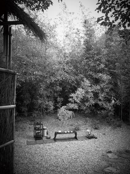 滌煩茶寮帶點寂然蕭瑟,捎來不疾不徐的竹風,在戶外品茶與天地合一。(滌煩茶寮提供)