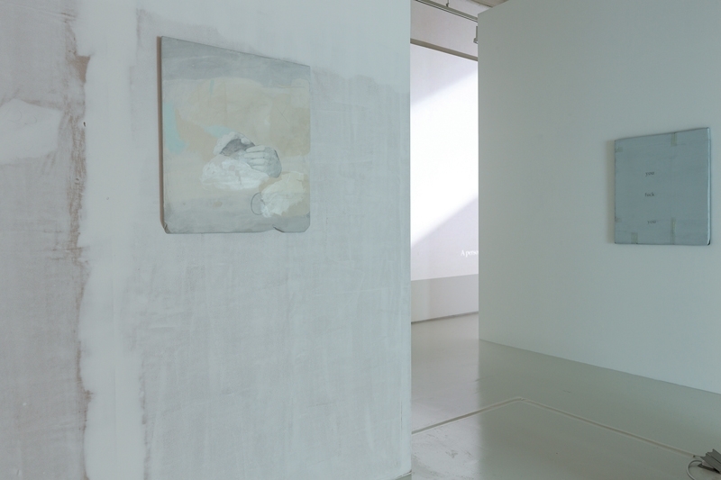 展覽場自成一整體,由多個場域性投影、紙本、卡紙板及木板油畫組成,每件作品都被納入整體,其獨立的意識中心,同時為己身也為他者存在,「一個展覽就是一個大構圖,每一個角落也各自有不同的構圖,影像是光源,其畫面也是構圖的一部分。」展覽中的投影作品多為靜止畫面,刻意偏離牆面中心投影,不在意漏光的隔間,自然漫射的光源也將天花板管線與逃難照明燈納入作品的氣場,這些佈展安排,部分是經過營造的隨散,部分是意外與巧合碰撞之下的成果。觀者於場中游移,身影與投影畫面交錯,在某一重疊的片刻中,看見作品,也看見自己。《This is something in my head》是一件繪畫、投影及裝置作品,投影機的光束穿過淺藍色透明塑料箱,投射出近乎靜止的影像畫面,在光暈中又掛上一件畫作,「畫面」成為穿透虛實隔層的影像,展間、投影牆、塑料箱,層層疊疊的投影,在已定義、未定義、將要定義的空間中存在著。任何遲鈍的目光都難以錯過這些「刻意」,這雙「莫名的手」與任何敘事主題或象徵意義的關係極度開放,其他作品也是如此;如果有任何話語存在,那並不是刻意要說什麼,而是這當下的時空,在欲言又止的寧靜當中,有些不起眼、微小的存在。