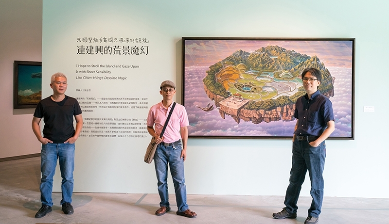 「我願望散步島國只深深的凝視:連建興的荒景魔幻」展覽現場一景。(毓繡美術館提供)