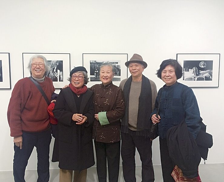2017年7月14日新竹鐵道藝術村「北埔」展覽開幕,蕭漢苗先生的兒子蕭鸞飛、孫子蕭日政代表北埔鄉民前來祝賀,展出作品中的人物,幾乎有一半是他們的親戚。圖片提供:阮義忠、阮璽