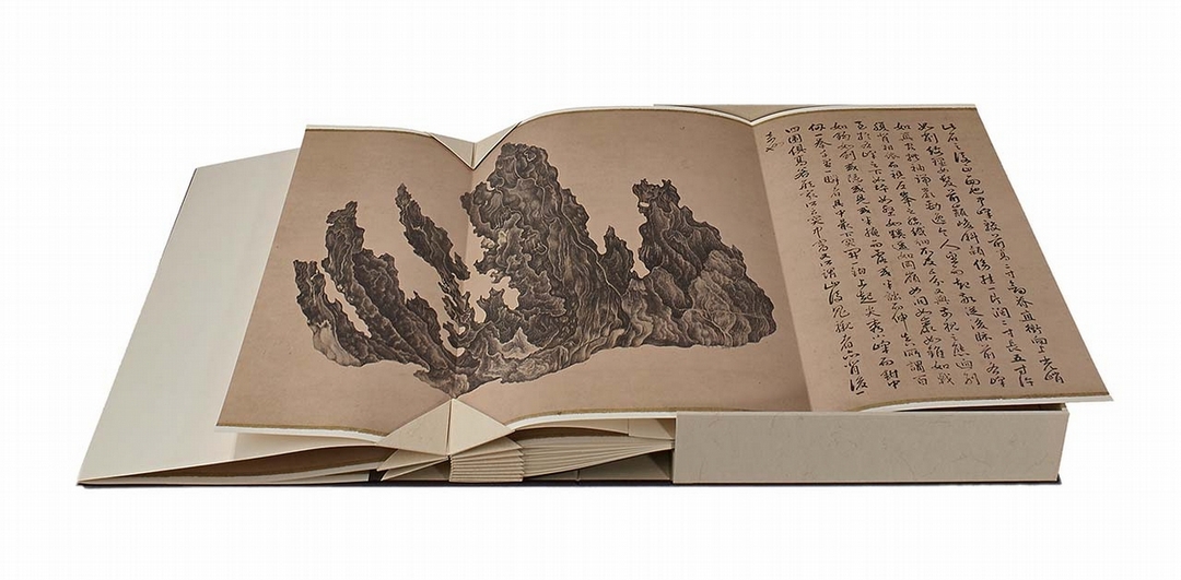 將近30年前,1989年12月吳彬〈十面靈璧〉現身於紐約蘇富比(Sotheby's)拍場,並以121萬美元高價售出,創下當時該公司中國古代繪畫的銷售價格紀錄。之後該作便經常出現於出版物中,被視為是晚明書畫創作的極致成就。2017年收藏家馬克斯.弗拉克斯(Marcus Flacks)與英國西爾芙出版社(Slyph Editions)共同合作,採用嚴謹繁複的工藝與獨特的裝訂設計,以「巖壑奇姿(Crags and Ravines Make a Marvellous View)」為名,首次再現這件長卷的十幅翻印畫面(圖6),力求在方寸間重現奇石層峰疊嶂的神奇韻味,表達中國傳統文人情調的細膩與典雅。在這套全球限量300冊的精裝版中,不僅附上完整題跋內容與英譯文,更收錄利特爾、弗拉克斯、林理彰(Richard John Lynn)和朱良志等學者的專論以及畫家劉丹的親筆題辭。2019年美國芝加哥大學出版社(University of Chicago Press)預計將會發行該書冊的平裝版,以饗更多對此畫有興趣的觀眾與讀者。