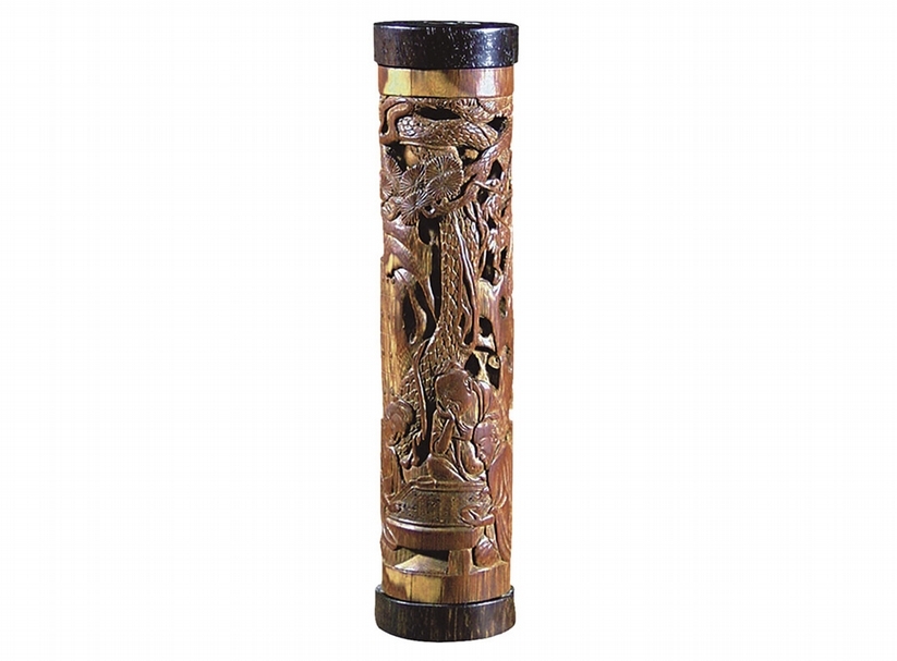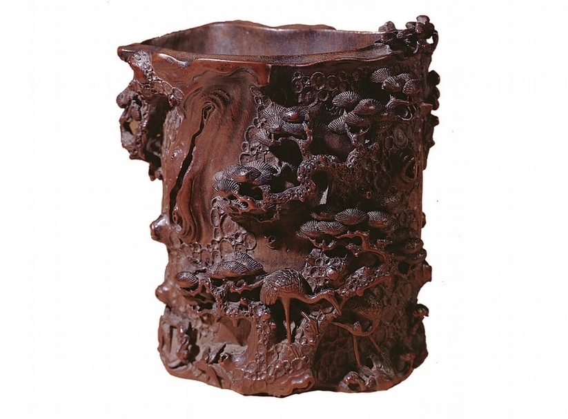 明代朱鶴〈松鶴筆筒〉,南京博物院藏。