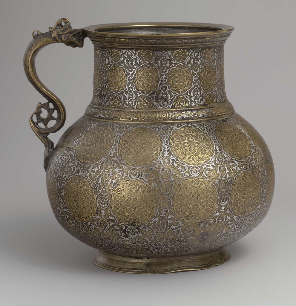 執壺(jug, pitcher)在世界各地的伊斯蘭藝術收藏中也多有存世,多數製於帖木兒王朝的赫拉特,其用途是盛放飲料,但是在中國的青花仿品中則戴上了「花澆」之名。這就像是農作物食材的傳播一樣,物品或作物本身的傳播並不一定會伴隨著用途或是料理方式。而這種執壺的龍形把手和龍的造形,則是蒙古時代以後才進入中亞伊斯蘭世界的藝術裝飾語彙中的。