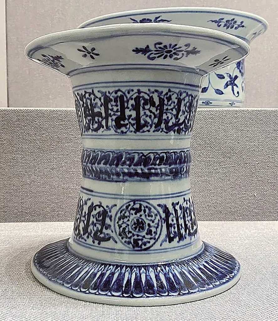 15世紀明初至明中期,無論官窯或民窯的青花瓷中,都出現大量前所未見的陶瓷器型。這些新器型也是不同文明間交匯的產物,而青花瓷本身也是不同文化傳統的審美在中國藝術中留下的遺產。