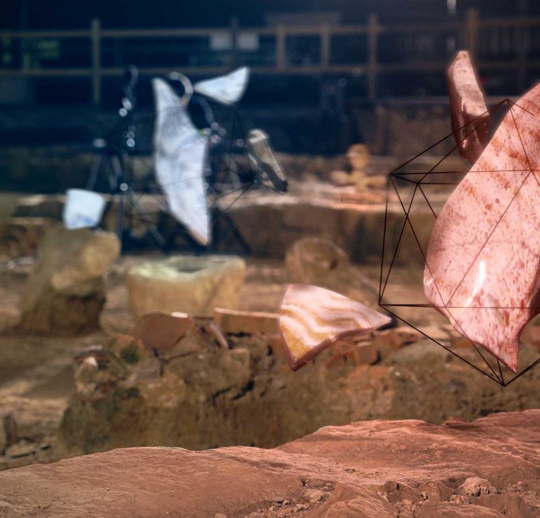 科技考古的方法應用在此件作品上,就是如何再創造過往的聲音,包括思考當時很難從西方搬運大型樂器來到台灣,可能是以輕便攜帶的笛子等做為聖樂吹奏的樂器,如以骨器做成的笛子等。包括教堂鐘聲對於附近居民造成身心無形的規訓意義,重新以數位的方式重建當時教堂可能的音場。許家維提到,在查詢17世紀聖歌時,被一段歌詞所觸動,歌詞提到「在我們之中」。而這個音場的重現,其實也是一段歷史現場的重新回放,作品中也存在那些過去不可見的「存在」,有著古代人、現代人、原住民與殖民者,因為這個重現,讓那些過往的存在的聲響都重新和此刻的當下同在。
