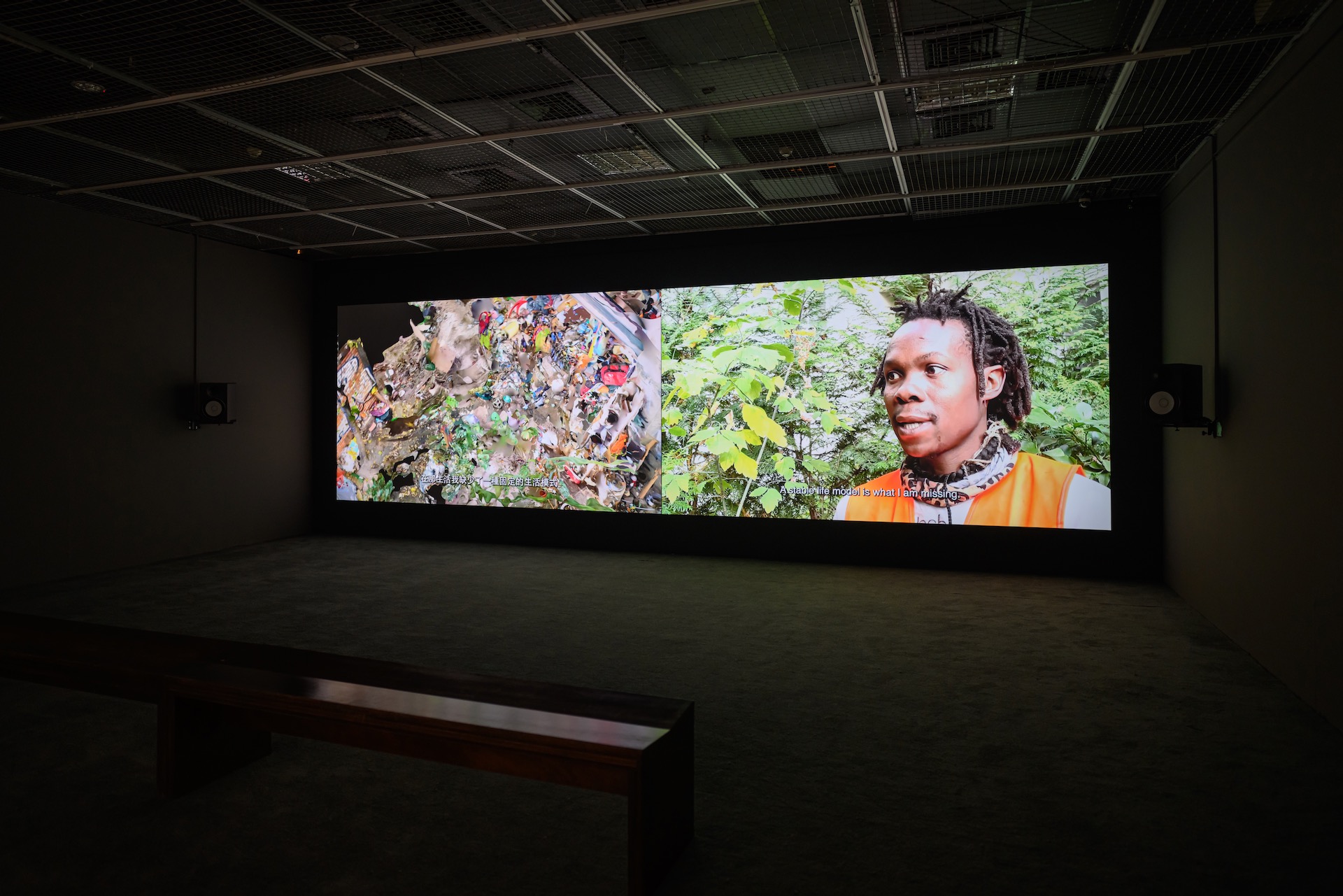 帶著科技技術發展下的心靈探索來到二樓,此一問題意識接著在幾件作品中,開啟對數位治理之於文明的雙面性思考,在「美麗新世界」般歌舞昇平的許諾中,更全面地省思未來:陳乂的「地衣_」計畫(2021)首先以3D掃描技術記錄從莫三比克移居柏林的遊民,影像的碎片展示了「科技之外」的人們,如何適應高速發展的科技社會,宛若地衣一般依附乃至佔領城市邊緣,一方面展現人類文明在地表上的拓展狀態,卻也呈現了科技發展下的排除機制;而于軒的「克萊因‧赫茲」系列(2017)不再對準特定技術,借用歷史人物之名,虛構出一位科學家所遺留下來的失敗實驗室場景。他結合寫實繪畫與擬真裝置,勾繪出鋼鐵機件腐蝕的質感樣貌,以及散落在地的儀器及石化的生物骨骸,對科技的末世氛圍進行臨場再現。兩位藝術家除了在議題上面向科技的失敗與無效,陳乂地毯式的掃描拍攝與于軒以純然繪畫與雕塑構建成的多重建構工序,都發揮了藝術的作用,在美學形式上呈現出文明感性的暗面。
