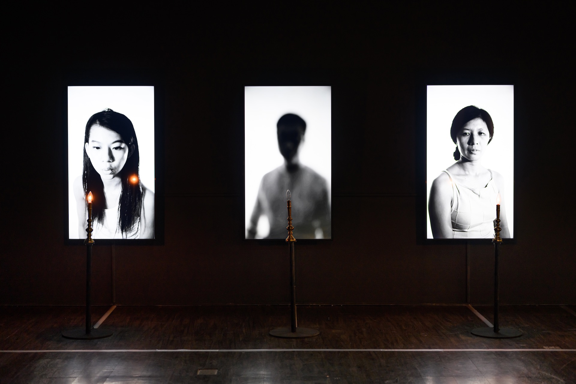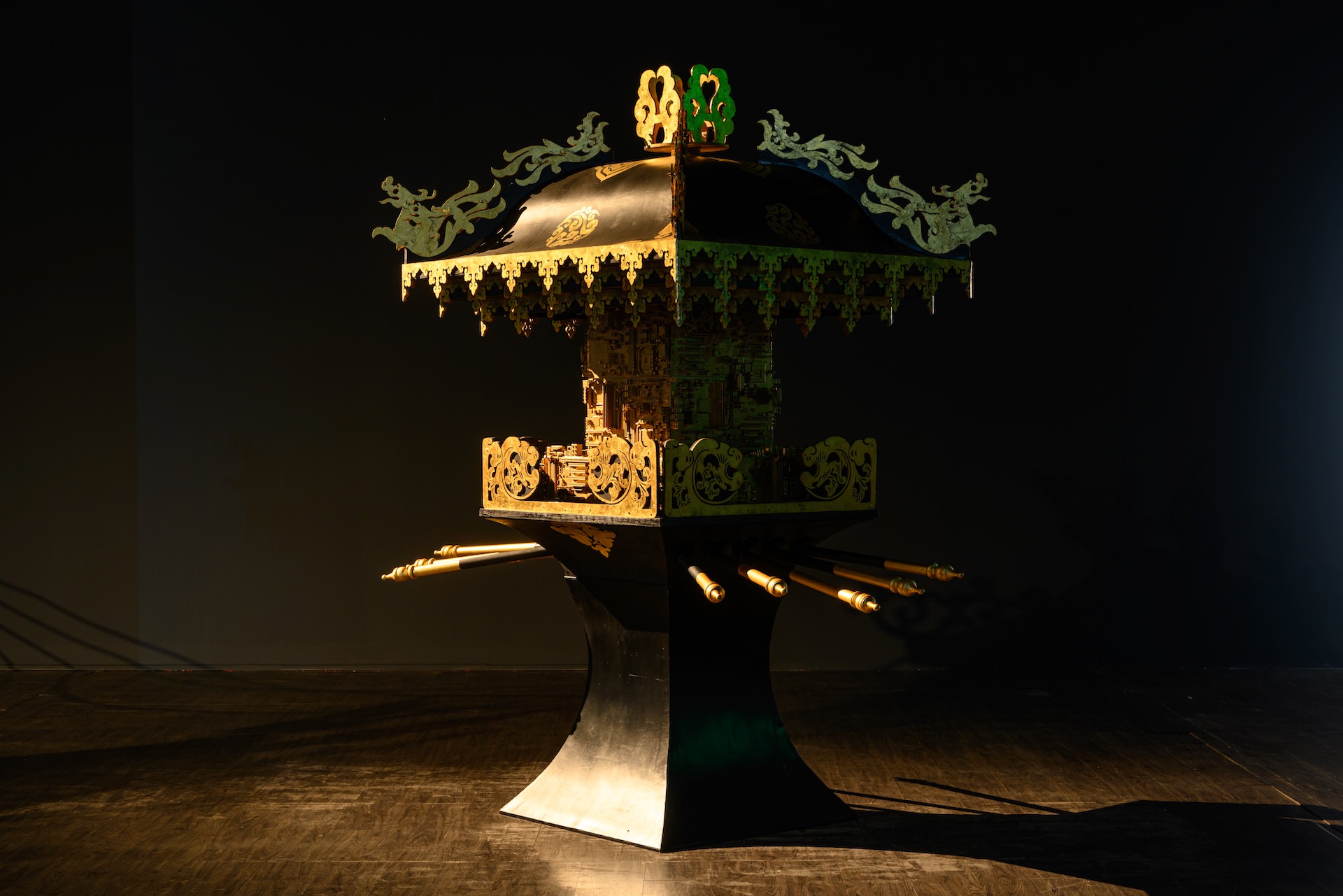 古典的宗教信仰於當代或未來科技中的延續或變形,也可見於黃贊倫的作品中。《神柱》(2020)與《神轎》(2019)中挑高、懸空的廟宇飛簷及華麗精細的雕塑裝飾,皆為藝術家改以積體電路板等零件構成,神聖之聲透過錯綜的電線交錯、連結,取而代之的是無線電科技的訊號傳輸,乃至互動式的程式設計;而《不滅》(2019)影像裡的人物紛紛以吹蠟燭般向螢幕外的燭檯造型燈吹氣,則反映數位身分的複數狀態,如何挑戰傳統的生死觀念;《副本》(2015)亦以人類飲食文化中的食補觀念,展現慾望、生存意志以及自我認同的反覆裂解、增生。