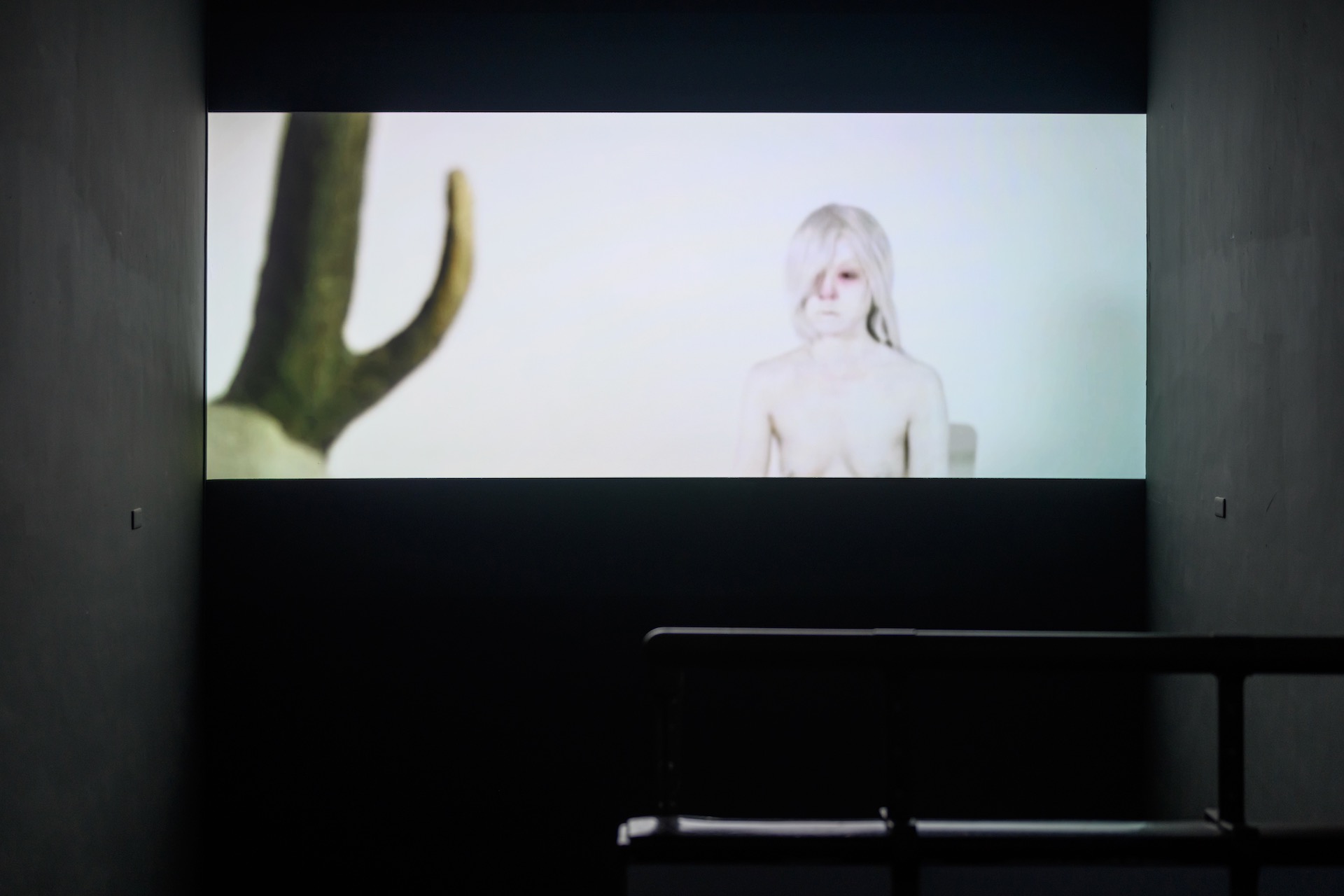 除了具象的視覺再現,《生物回饋》(Biofeedback Art,2011)也透過電子探測器連結身體,轉譯聲音與色彩輸出,彰顯身體在醫學上,已為心電圖、腦電波等醫療儀器轉變為數據化訊號。不過,藝術家在此將探測器對準的是「脈輪」位置,更嘗試開啟古代東方神祕學中的能量身體與西方科學技術之間的交互對話;如此將當代醫療科技技術昇華至與心靈層次的探索,更體現於卡爾的《鹽礦坑中的表演》(Performance In Salt Mine,2018)中。藝術家來到人類所開鑿出最深、最大的洞窟「波蘭維利奇卡鹽礦」(Kopalnia soli Wieliczka),透過腦電波感測器測量大腦在冥想下的電波頻率,並在其頭頂上投影出圖像與聲效。藝術家在將自身幻化為科技時代裡的「蓋婭」身影的同時,亦回望著人類演進的關鍵:人類之所以為人類,即因在遠古洞穴中創造了藝術,而創發了心靈活動。此一精神性的儀式可謂為「蓋婭」展覽的一樓展間,做了承先啟後的總結。