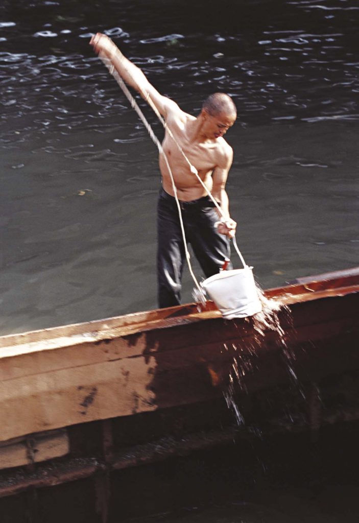 2021_BK:這是你對於未來的抽象想像,我可以更具體地多說一點。在「水體」簡短的前言的開篇就提到「著眼於人類、超人類(more-than-human)和後人類(post-human)的液態性,著眼於他們互滲互生的流動方式。」但在欲言又止,日益固化的現實氛圍中,期待將「所有身體築成液態的共同體」顯然是泛泛而談。在蘇州河畔的一座辦公大樓裡,UCCA Edge的開館展「激浪之城:世紀之交的藝術與上海」中收入了何雲昌的行為攝影,2000年11月的他靠體力將蘇州河水從下游一桶桶運至上游。「樹,樹」展覽中可以看到在1990年,黃永砅為一棵折斷的樹治療—填充攪拌的報紙。何云昌和黃永砅的行動都表達了逆轉現實的企圖:何云昌選擇具身性的博弈,黃永砅則以文化性順勢而為。越來越體制化的藝術和現實中,兩種行動都是無謂的,何雲昌的身體在21年後的展廳了變成了紀念碑,而在黃永砅那里,不論如何攪拌紙張,它也不可能變回植物。一切都是不可逆的,世界上沒有時間機器,目前現狀的最佳文化策略就是沒有策略。