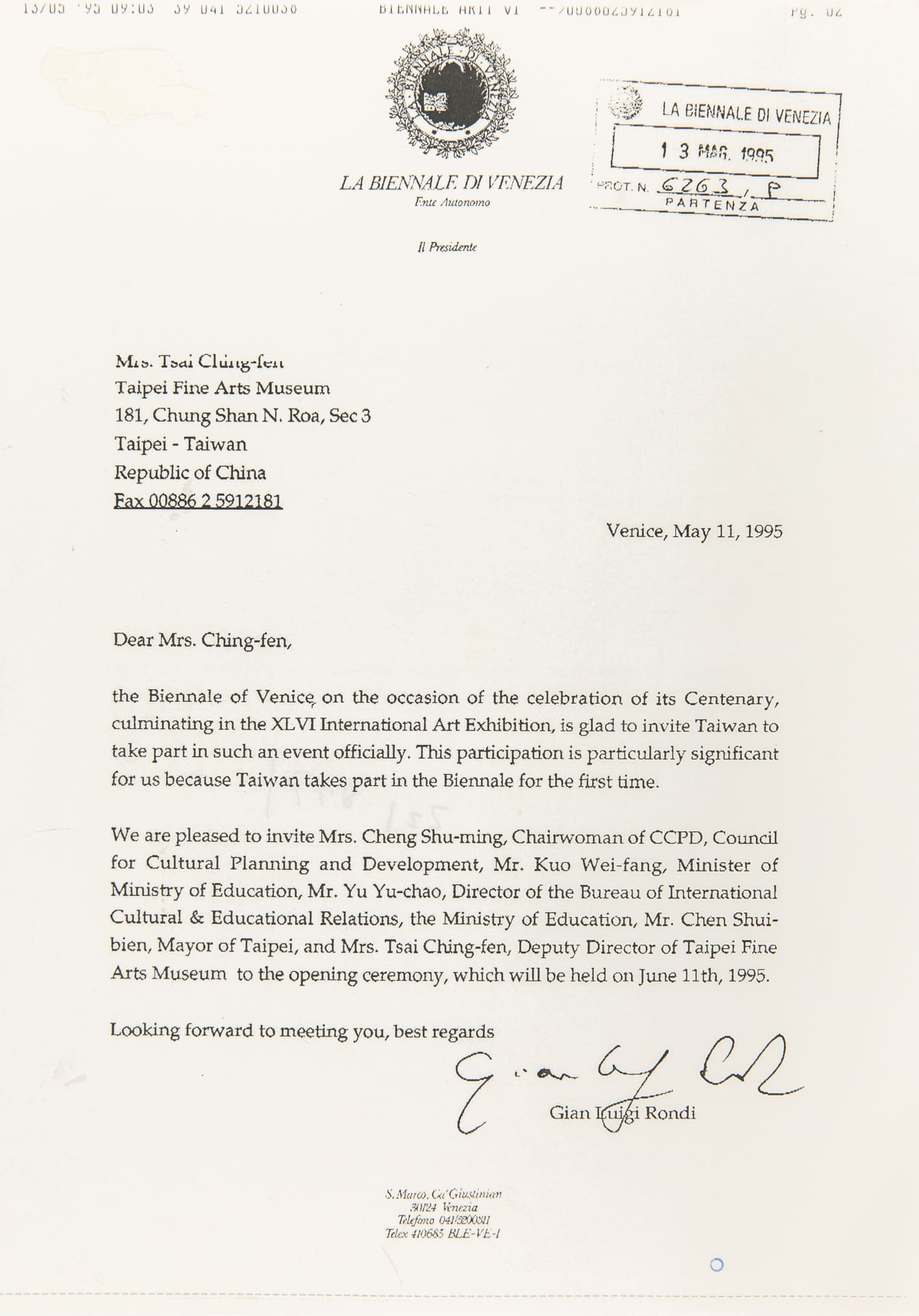 由臺北市立美術館(簡稱「北美館」)主辦之「第59屆威尼斯國際美術雙年展」台灣館「不可能的夢」,即將於義大利威尼斯普里奇歐尼宮邸(Palazzo delle Prigioni)舉辦,今日(25)舉辦行前記者會。本次展覽計畫中,「文獻展示」由北美館策劃,展出1995至2019年台灣館的檔案與作品回顧,將包含數件曾參展之作品;「國際論壇」則由菲律賓資深策展人派崔克.佛洛雷斯(Patrick Flores)擔任總召集人,兩者將因彼此的內容激發更多對話,成為一個召喚記憶(檔案)和存在(活動或事件)的集會平台。