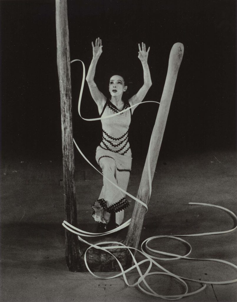 作為第二次世界大戰的戰勝國,美國不僅在政治與經濟層面正式取代歐洲,同時也成為了文化的強勢輸出國,著名的舞蹈家瑪莎.葛蘭姆(Martha Graham,1894–1991),便是當時美國的代表人物之一。自如同現代聖母像的《悲痛》(Lamentation,1930)發表後,葛蘭姆成了家喻戶曉的美國現代舞大師,尤其在二戰後,葛蘭姆的每個作品都堪稱舞蹈史經典中的經典:《心之洞穴》(Cave of the Heart,1946)、《夜旅》(Night Journey,1947)、《迷宮行》(Errand into the Maze,1947),那令人泫然欲泣的戲劇敘事、張力十足的身體角度與線條、收縮與釋放(contraction and release)的舞蹈語彙,都是葛蘭姆的正字標記。