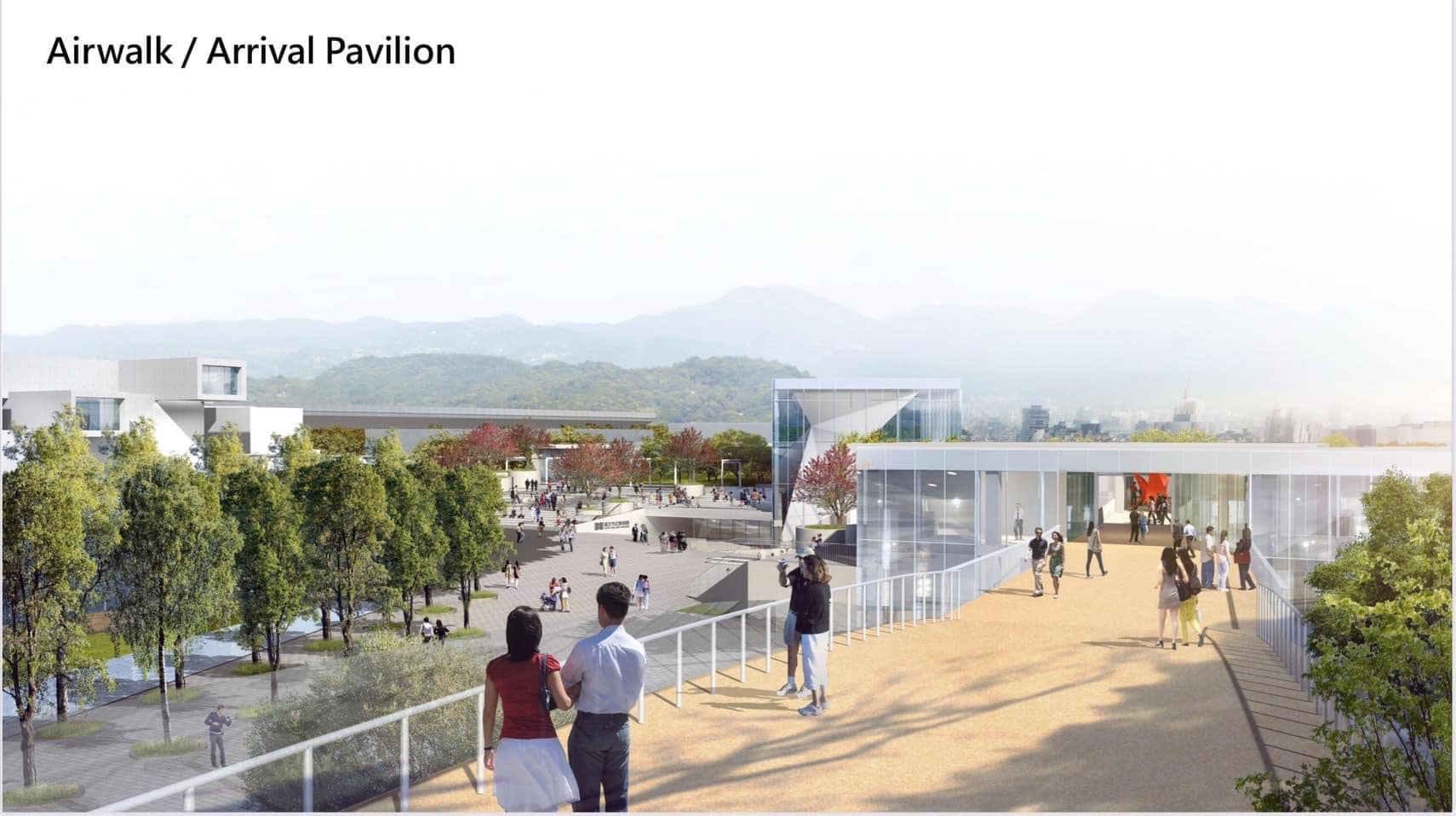 對郭英釗團隊來說,北美館新館座落在花博公園圓山園區內,公園本來就是屬於市民的,不應該因為美術館新館的興建,剝奪他們的權益。如何墊高市民的腳步與視野,在空橋上去來無阻力,就算不是為了欣賞表演或展覽,也能在空橋上散步,吸收公園芬多精,鳥瞰潭潭山水,甚至遠眺淡水河,讓平疇綠野,滌盡塵俗。
