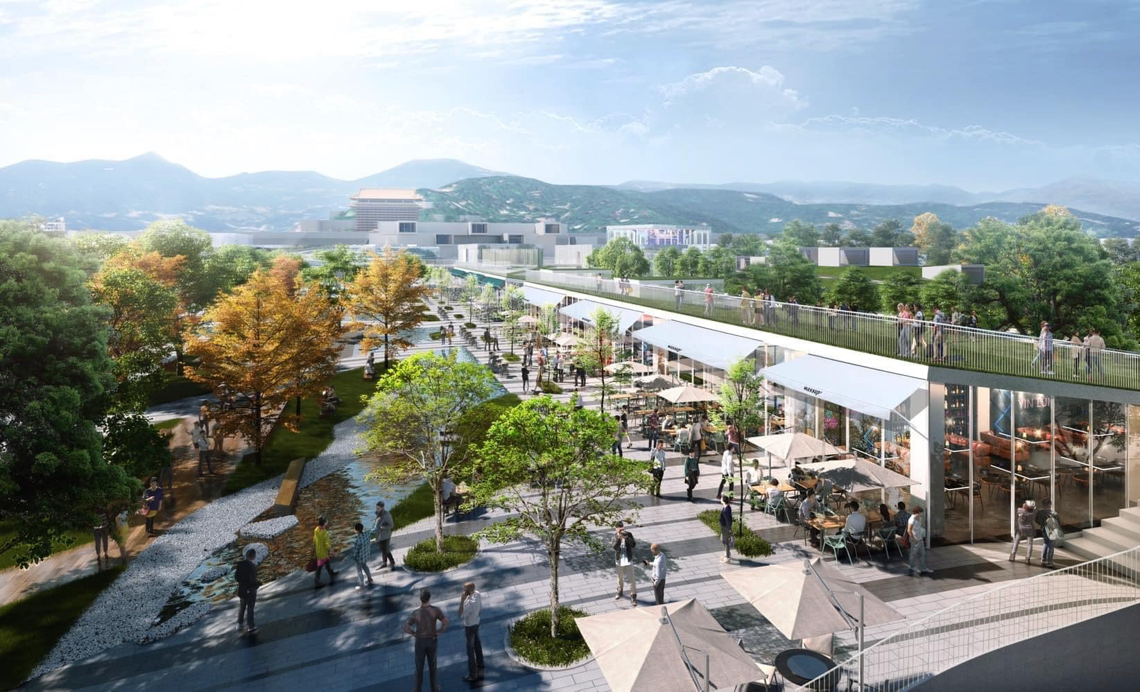 尤其,郭英釗團隊刻意把中山北路的車流作阻隔,在公園裡面上層是草地,草地就是商業空間的屋頂,完全看不到商業空間翹起的屋頂,中山北路的喧囂跟公園完全隔絕開來。沿街的個別店面,因為可以展現自己的風格,增添了都市風貌的多樣性。不同的氛圍,大家各有所好。容許各店家展現魅力,增加人流與交易機會。值得一提的是,在公園隅角,生態池旁邊,特別規劃了特色餐飲空間,迎接重要星級餐廳進駐。