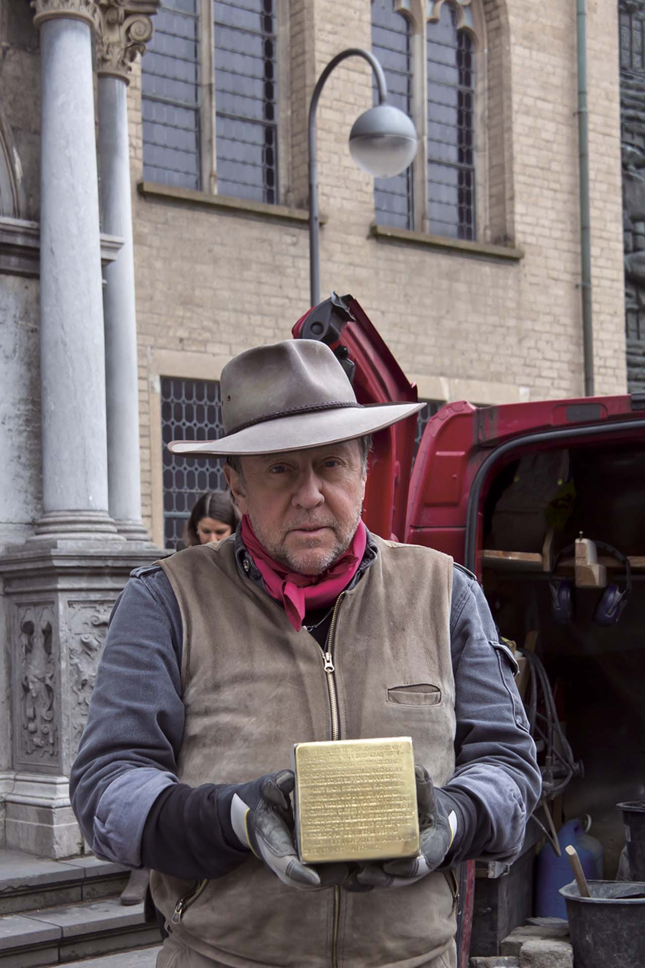 絆腳石設置地點的特定性是這個計畫最大的特點,然而,我更想談的是計畫發展過程中對藝術家產生影響的一個深刻經驗。丹姆尼科在幾件反戰的作品後,於1980年代開始發展在公共空間中的「移動雕塑」,當時以辛堤與羅姆人被送往集中營的路線標誌逐步發展出黃銅材質的使用,並接著在另一個計畫《希姆萊命令》開始使用黃銅片。此時雖可看到「絆腳石」的形式雛形,然而,讓「絆腳石計畫」成形的一個重要事件,是丹姆尼科某次於科隆執行計畫時,一位身為歷史見證者的當地婦人與丹姆尼科交談,並懷疑地說她並不記得周遭住了辛堤與羅姆人。丹姆尼科翻資料找出一些名字,詢問婦人是否對這些名字有印象,才喚起了婦人的記憶。這讓丹姆尼科對於大屠殺在日常脈絡中的認知有了新的體認,也就是,在日常生活情境中,鄰居的身份並不是人們會去特別留意的,因而像這樣在日常生活環境中的紀念碑,便有了全然不同的意義。(註5)在大街小巷都可見到的「絆腳石」提醒了在這些地方生活的人們,這些事件與我們有多麽近,而這些受難者可能是我們認識的人。