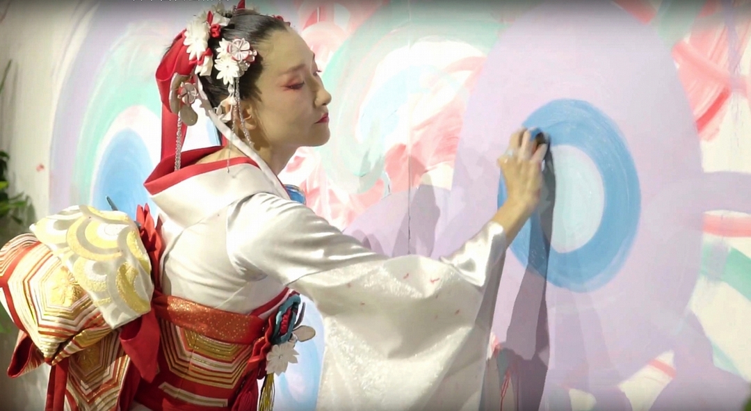 神田沙織(Saori Kanda)於開幕當天現場表演的踊繪藝術。(中陽文創藝術股份有限公司提供)