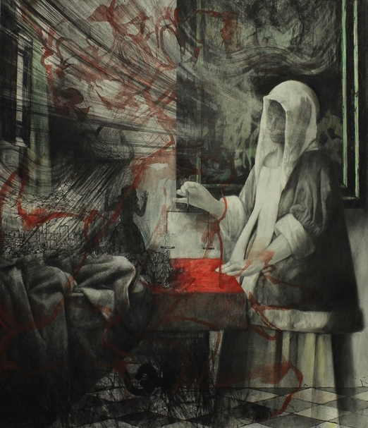 在20世紀以來,「挪用」在當代藝術創作中一直備受爭議且引人注目,無論是利用現成物或大眾文化所熟悉的形式與符號,都是在創作者「別有用心」下去實現的藝術創作。北川雅光(Masamitsu Kitagawa)「Drawing」系列作品便是挪用具有權威性的經典巨匠,17世紀荷蘭畫家維梅爾(Johannes Vermeer)之作,充分的利用其作品所承戴的豐富信息與大眾視覺經驗,並通過語境的改變,去完成其傳統藝術手段難已實現的藝術功能,企圖讓藝術最大限度的貼近大眾。賦予它新的語彙與新的觀念和角度。
