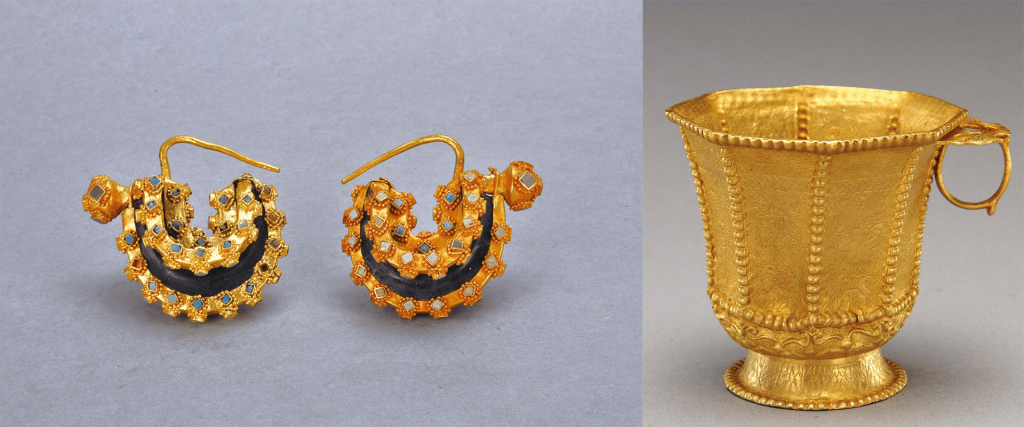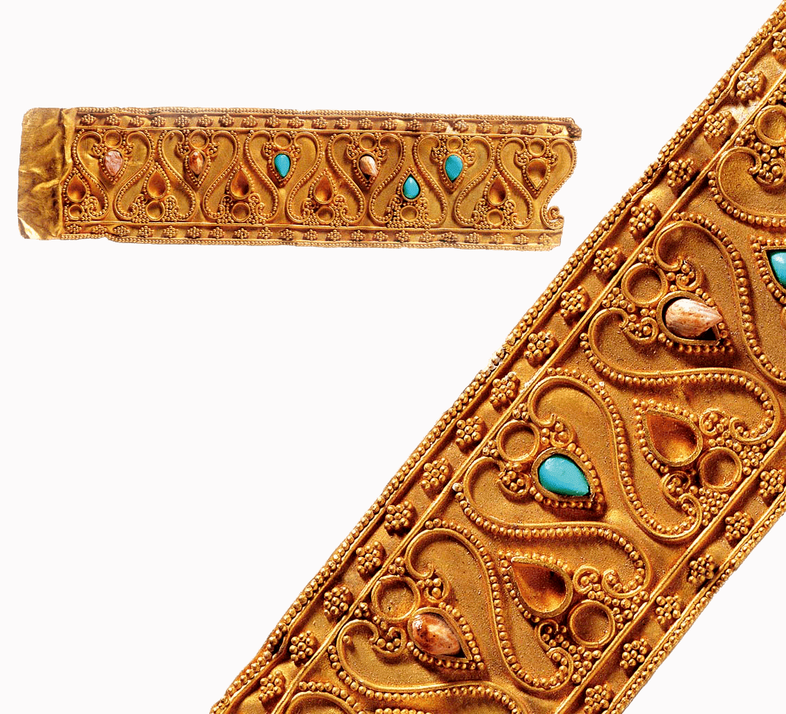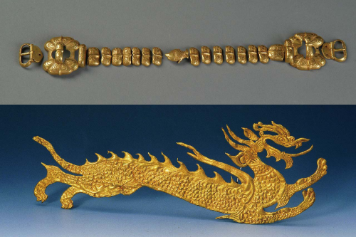 總之,黃金飾品首先出現於夏商時期的北方地區,直至兩周,其使用有明顯的南北之分。在北方,黃金多用作身體的華飾,是地位的象徵;而在中原及長江中游地區,黃金多只是青銅、玉石禮器的點綴。秦漢大一統國家的形成使得金器的南北分野漸趨消亡。伴隨青銅器的式微,黃金確立了在禮制中的地位,並被納入歷代輿服制度的範疇,成為最高等級的標誌。戰漢時期細金工藝的成熟、彩石鑲嵌的流行、裝飾母題的多元;唐代金銀器的勃興,成為精英階層最重要的日常器用;明代寶石鑲嵌的復興、清代金胎琺瑯工藝的出現,無不與絲綢之路中西交流、古代中國南北融合的幾個關鍵節點相契合。