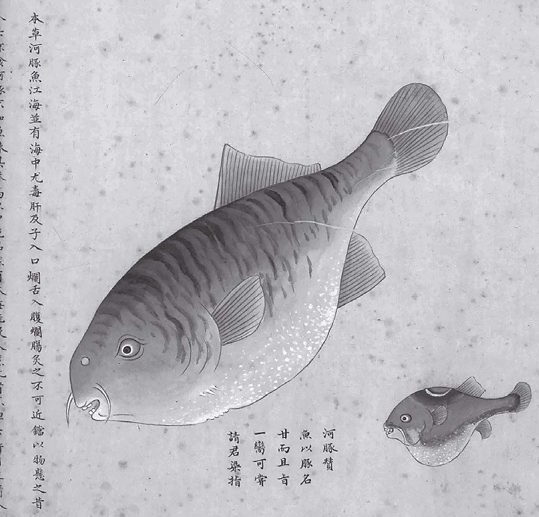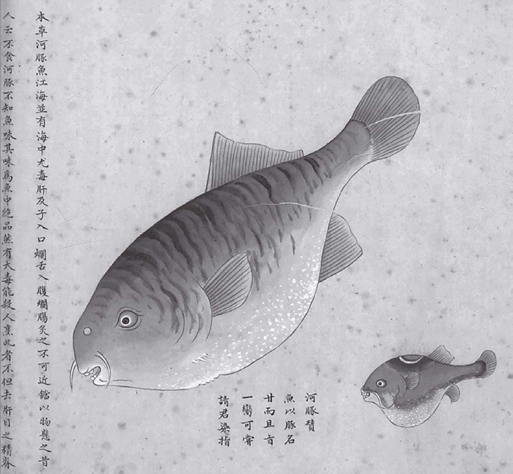 順道一提,早在北宋一代,不少名人雅士已經開始關注「河豚性毒」的問題。蘇軾(1037-1101)在其〈惠崇春江晚景二首〉便提到「竹外桃花三兩枝,春江水暖鴨先知。蔞蒿滿地蘆芽短,正是河豚欲上時」,強調「食河豚值得一死」;梅堯臣(1002-1060)在〈范饒州坐中客語食河豚魚〉也有類近的紀錄:「春洲生荻芽,春岸飛楊花。河豚當是時,貴不數魚鰕。其狀已可怪,其毒亦莫加。忿腹若封豕,怒目猶吳蛙。庖煎苟失所,入喉為鏌鎁。若此喪軀體,何須資齒牙?持問南方人,黨護復矜誇。皆言美無度,誰謂死如麻。」