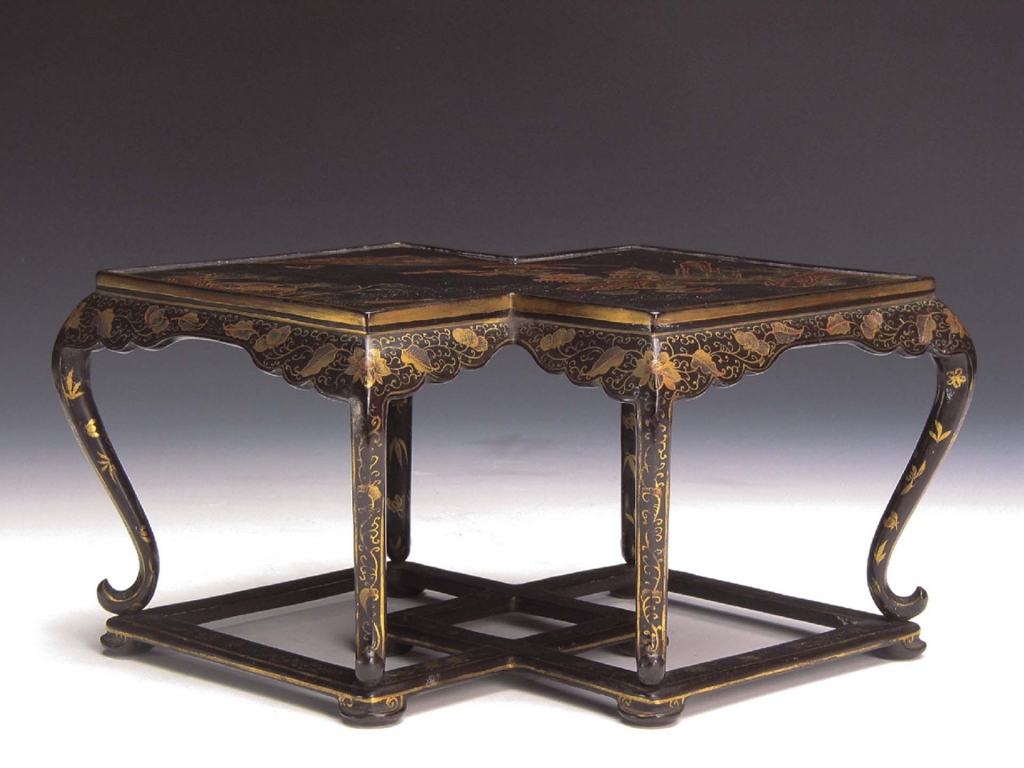 清〈黑漆描金山水紋方勝香几〉