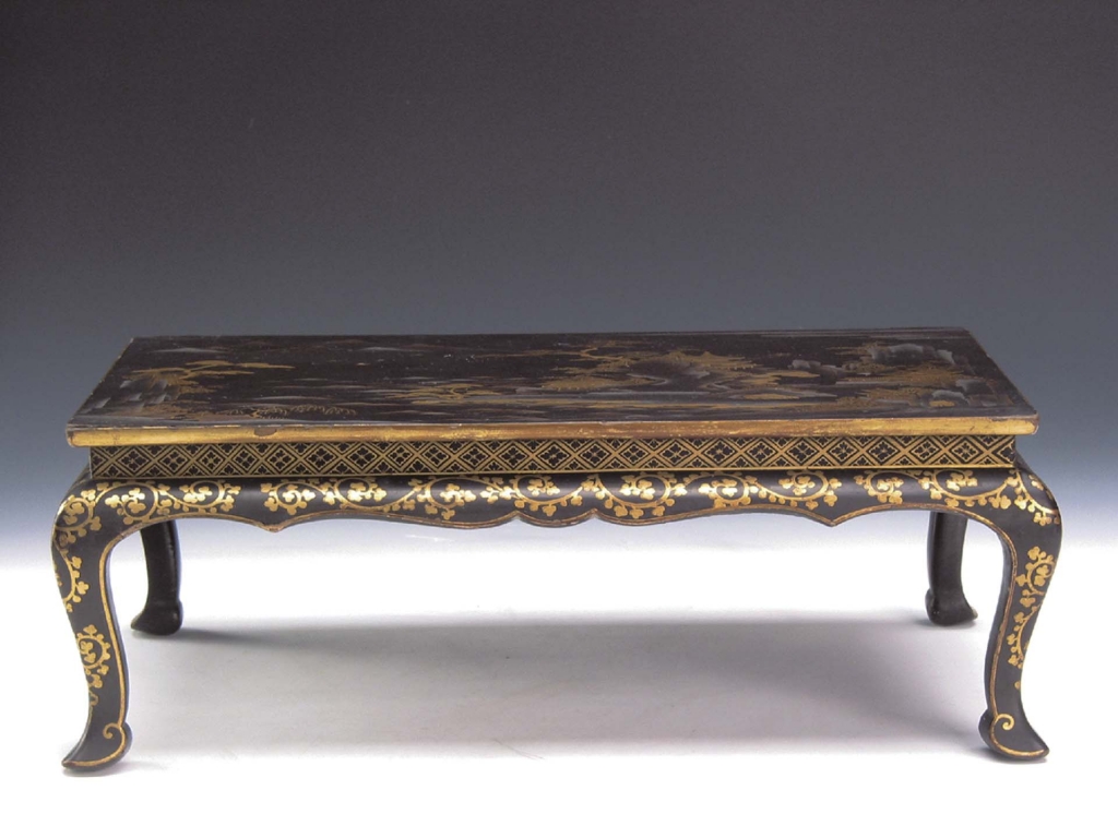 清〈黑漆描金山水紋長方几〉