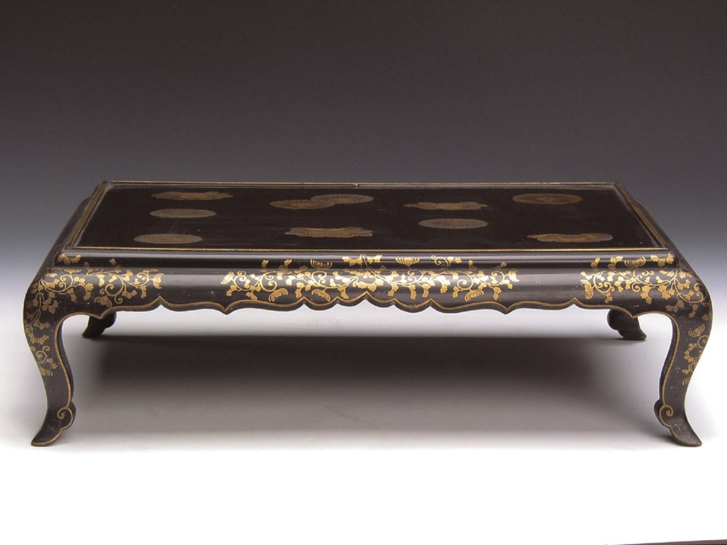 清〈黑漆描金銀團花長方几〉