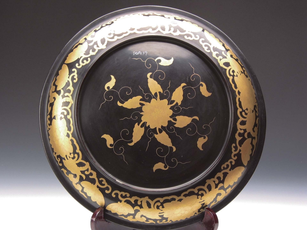 清〈黑漆描金花卉紋圓盤〉