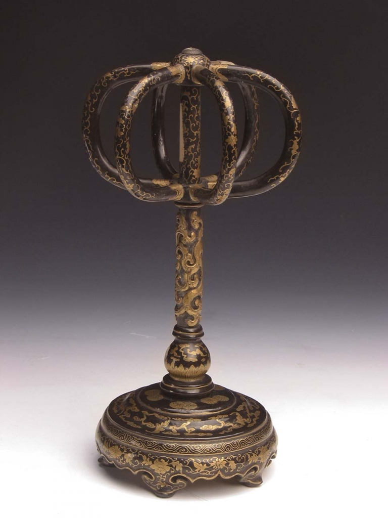 清〈黑漆描金萬蝠冠架〉