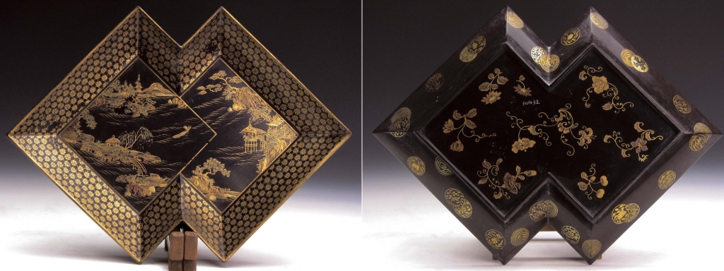 圖10 清乾隆〈黑漆描金山水圖方勝式盤〉,北京故宮博物院藏。圖/劉曉晨。