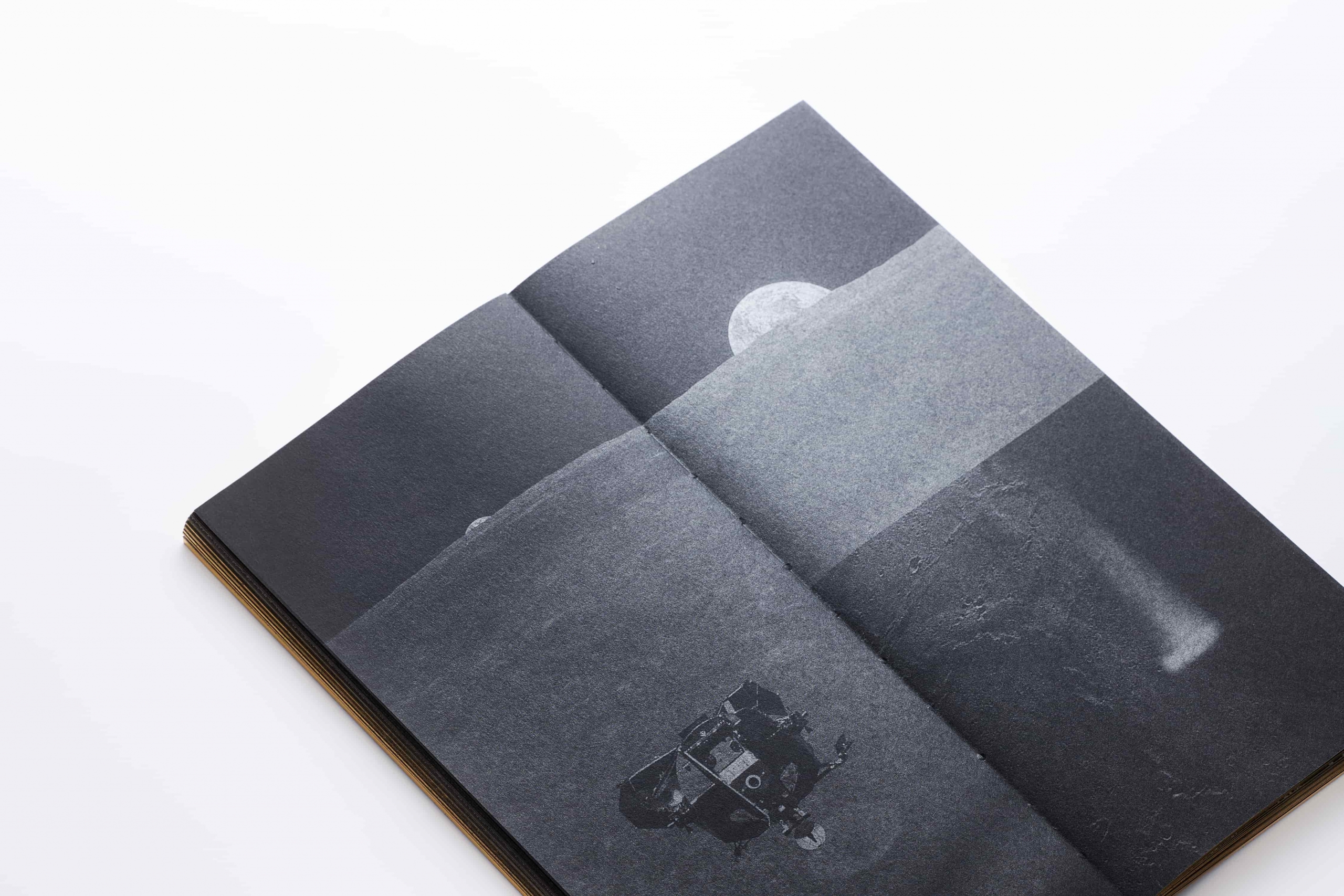 《物》的製作工序最困難之處,是在於紙本身是木漿製成,其本身的物理性會經由印刷加工不免造成程度不一的伸縮,進而產生各種不確定因素,《物》外觀看似有著極簡的銀、白、金、霧黑所排列組合,其實可能是近年台灣以黑紙為基底,在結構與加工、印刷方式都挑戰台灣裝幀技法的新高度。