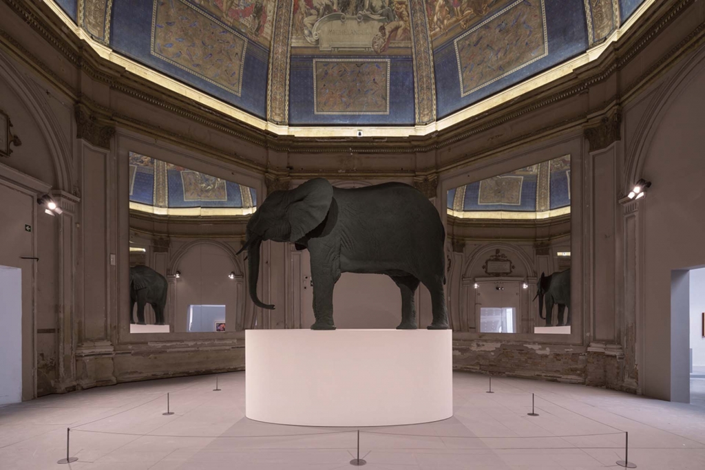 除了穿梭古今、織造歷史和當代的巧妙對話,阿萊馬尼同時擅長利用不同形式、媒介、大小的作品的搭配和交錯,時而大型沉浸式的裝置,時而密集陳列、必須貼近觀看的小幅素描和繪畫,巨大雕塑後面緊跟著平板螢幕上播放的錄影作品—展覽結合歷史與科技,在現實與超現實之間遊走,調動著觀眾視覺、聽覺、觸覺、嗅覺等不同感官和想像力,使得今年觀看威尼斯雙年展的數百件作品並未讓人覺得特別疲累。阿萊馬尼身為紐約高線藝術(High Line Art)公共藝術項目總監暨首席策展人的背景和經歷不無助益,深諳如何在非美術館的大型戶外空間展示作品和打造節奏快慢有致的動線。