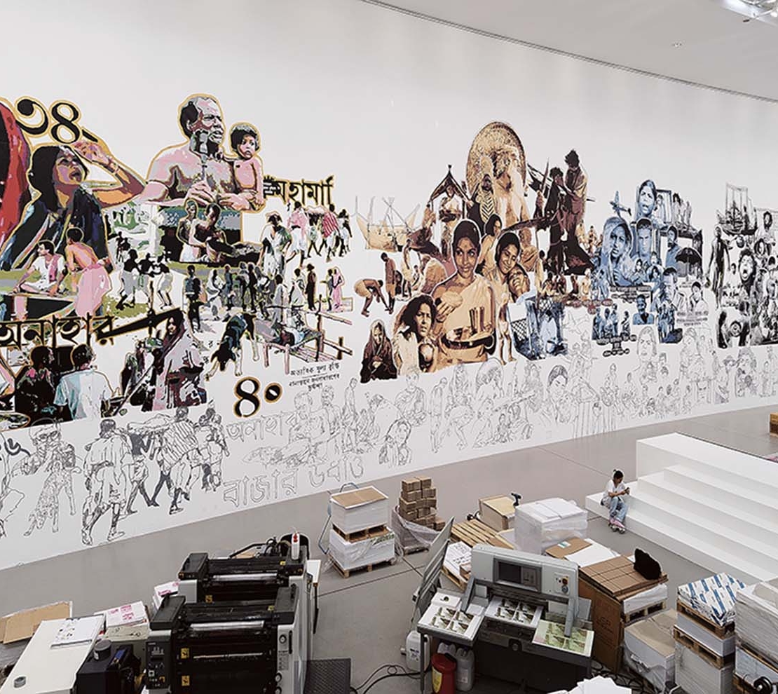 印尼「稻米之牙」(Taring Padi)小組創作於2002年的這件作品《人民的正義》,據藝術家表示,完全針對受蘇哈托軍權30年壓迫統治的印尼語境;作品以諷刺漫畫的手法對軍事主義、專制政權、殖民主義和資本主義做出批判。事實上,《人民的正義》早在20年前即參加過在澳洲阿德萊德舉行的南澳大利亞藝術節—當時並未激起任何漣漪。然而,時空移轉到了今天的卡塞爾,儘管畫面繪滿一百多個人物,眼尖的德國觀眾還是馬上看到長著豬臉、紮著大衛之星領巾,頭盔上寫著以色列情報機構摩薩德(Mossad)字樣的軍人。豬被猶太教視為不潔的動物,豬臉、豬鼻一直是納粹政治宣傳以及長期以來反猶人士醜化和侮辱猶太人的典型表現方式。德國人民至今背負著二次大戰納政權迫害和屠殺猶太人的沈重歷史和罪惡,猶太人和以色列在德國是一個格外敏感、難以碰觸的議題。不僅兩年前德國聯邦議院才剛決議通過將國際一項支持巴勒斯坦人的BDS運動—向以色列作出「抵制、撤資、制裁」(Boycott, Divestment and Sanctions)—定義為「反猶」,不得接受聯邦政府或任何公共資金的支持(而文件展的經費一大部分來自聯邦政府),柏林德國歷史博物館也才於數月前舉辦了一項展覽,追溯、梳理文件展自成立以來和政治之間複雜糾結的關係。「文件展:政治與藝術」展揭露了文件展的聯合創辦人以及初期眾多組織者是納粹黨員的難堪歷史,以及稍後成為冷戰時期東西政治勢力較勁的重要戰場和工具。