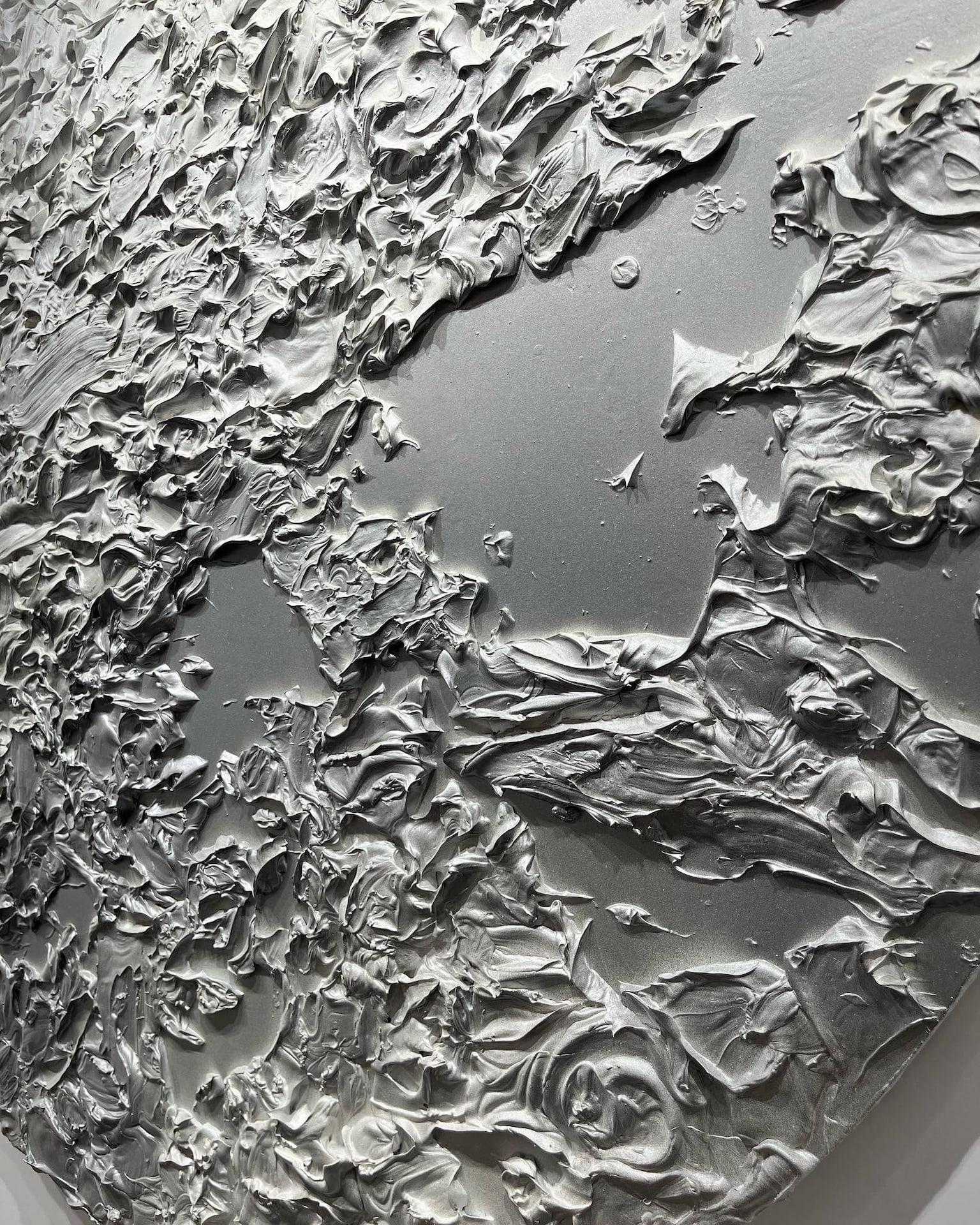電繪板與觸控筆,以及畫布與畫筆,這兩種組合是他在過往的生涯中經常使用的繪圖工具。然而,這兩種工具背後不只有截然不同的技術,就連立體與平面在實體繪畫與數位視覺之間的觀念也有著不同維度。我們可以進一步從「YUE」中,看見這位藝術家如何在「實體化」與「數位化」之間,與繪畫搏鬥的過程。