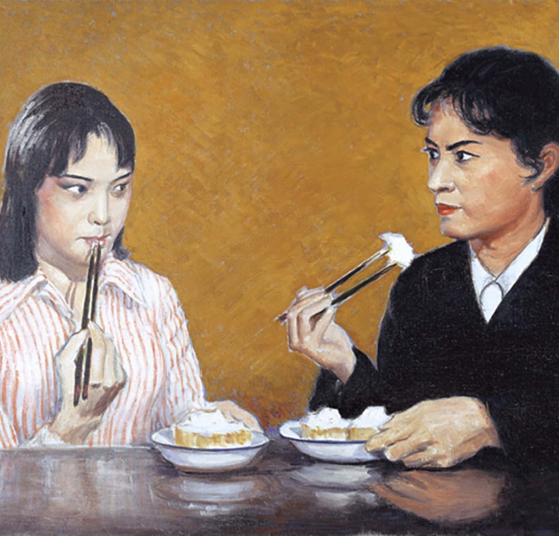 王興偉,《無題(吃蛋糕)》,油彩、畫布,107×154 cm,2002。(星美術館提供)