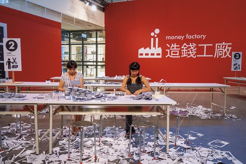 蘇約克Stephanie Syjuco|造錢工廠:經濟現實遊戲Market Manipulations 複合媒材裝置 尺寸依展出場地而異 2015 藝術家自藏 攝影╱劉仁凱 國立台灣美術館提供