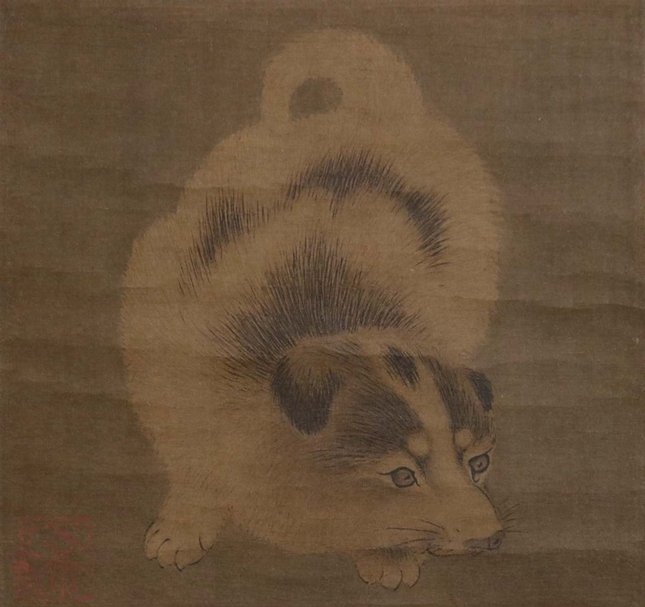 圖7 朝鮮王朝前期〈雙狗子圖〉,絹本設色,日本私人藏。圖︱私人收藏
